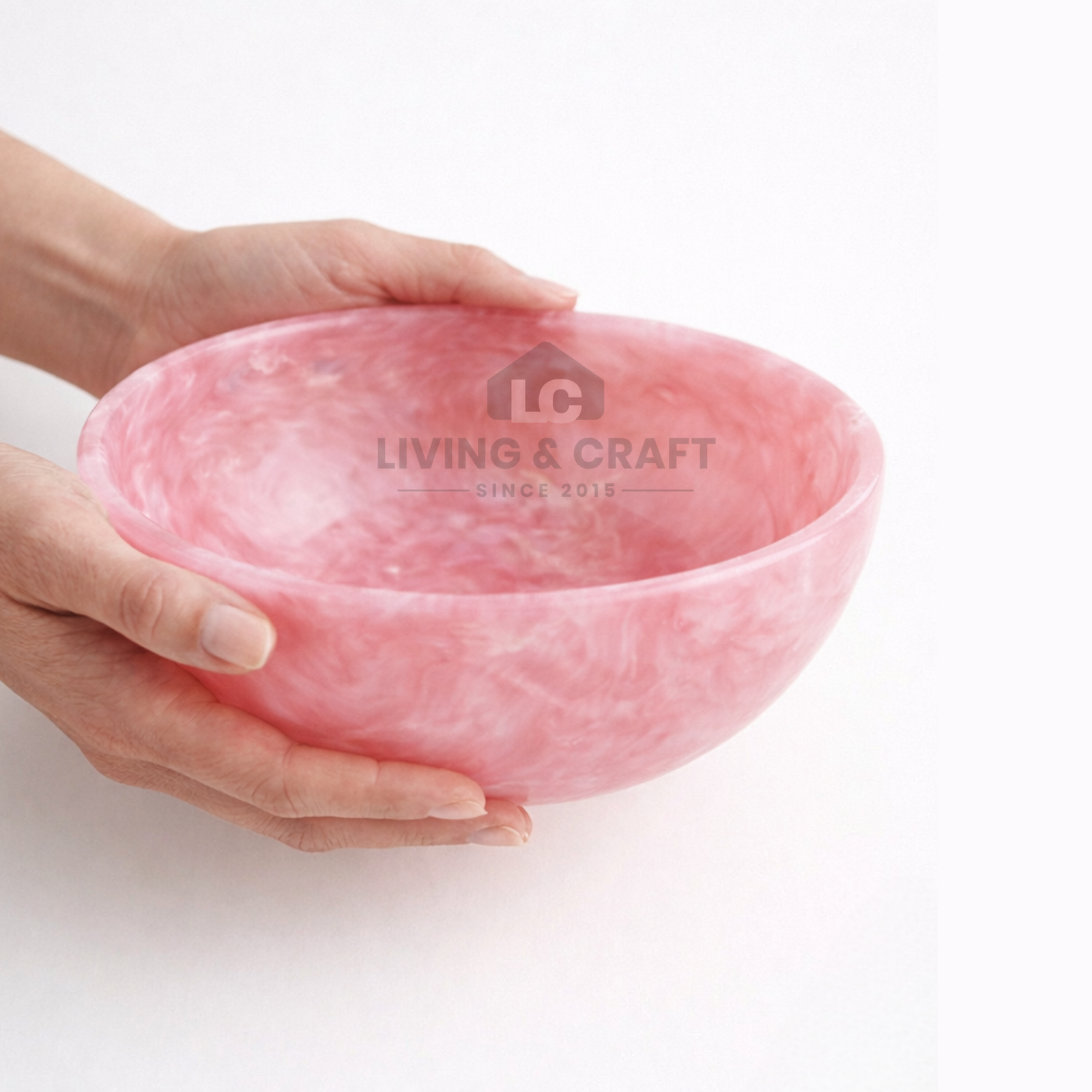 This handcrafted pink resin bowl features a soft marbled finish and a smooth, polished surface. Designed for modern interiors, it works beautifully as a decorative bowl, fruit bowl, or table centerpiece for homes, hotels, and retail displays.