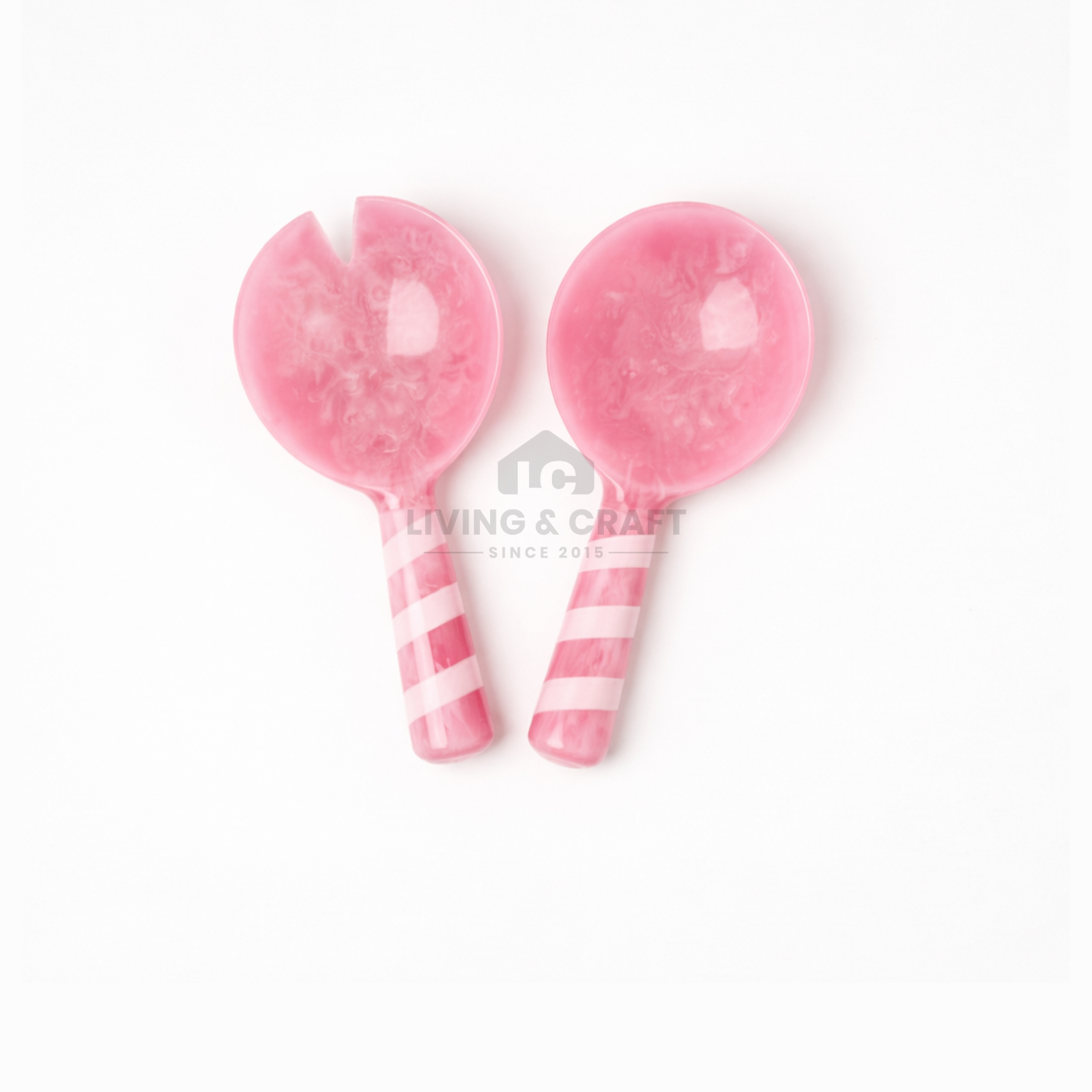 This handcrafted pink resin serving spoon set features a soft marbled finish and a smooth, ergonomic design. Ideal for serving, table styling, and decorative use, it complements modern homes, cafés, hotels, and retail collections.