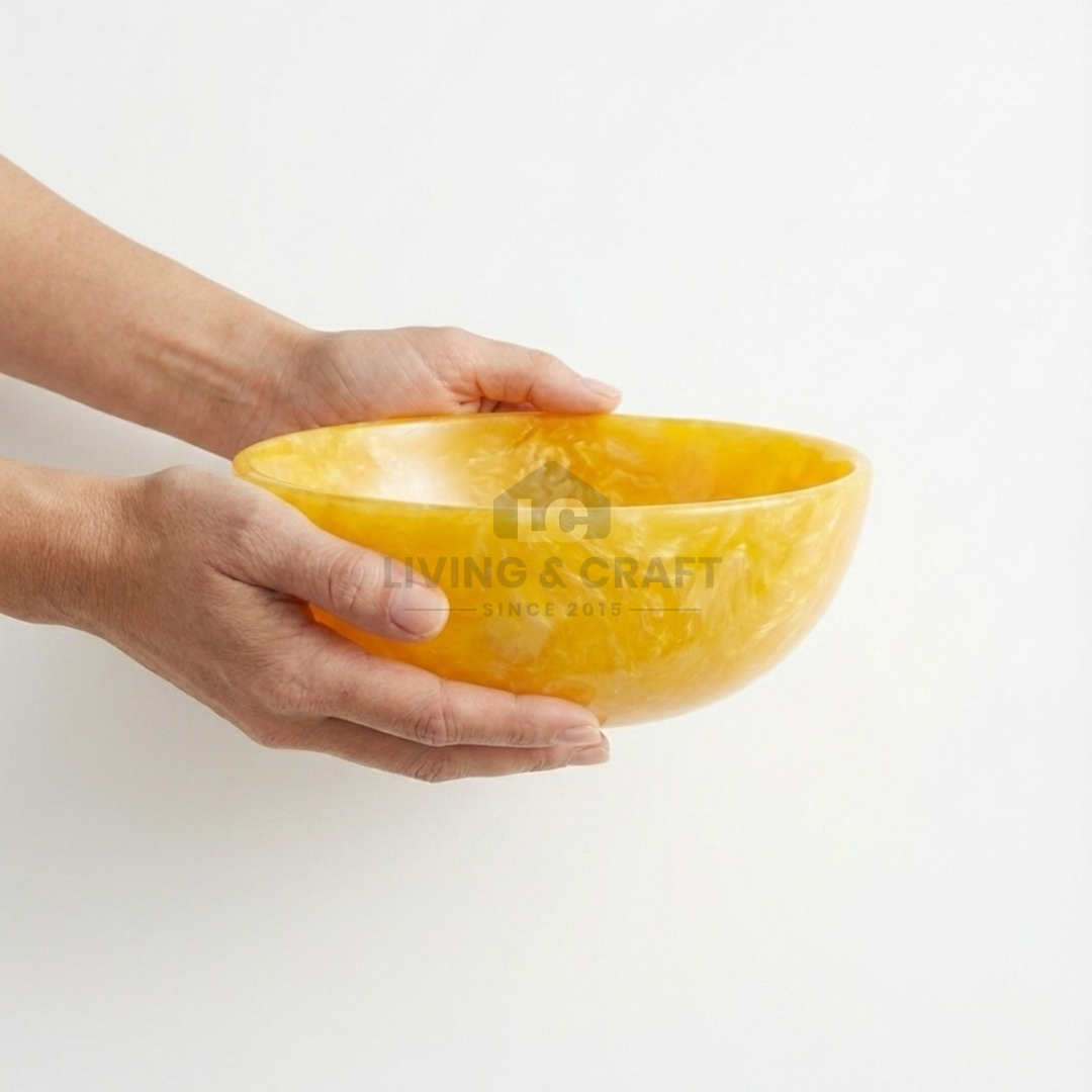 Enhance your space with this handcrafted yellow resin bowl, designed to bring warmth and modern elegance to any interior.